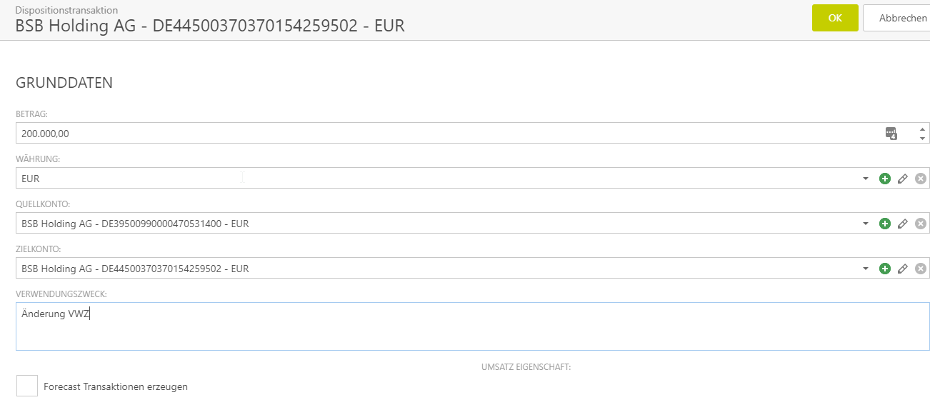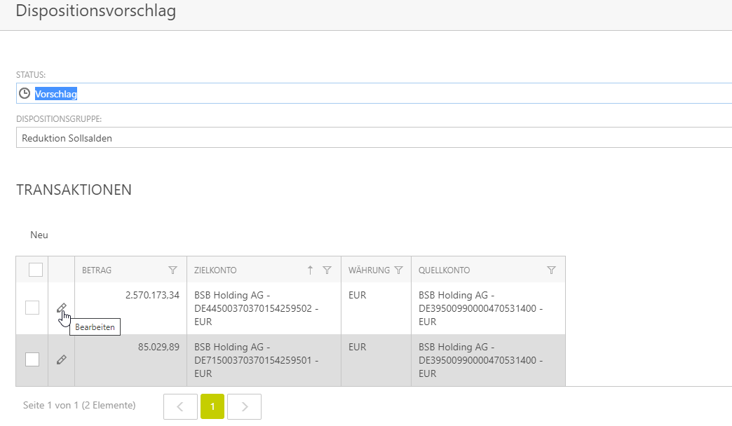 Nach Auswahl des Vorschlags ist das Bearbeiten der Transaktion(en) möglich.