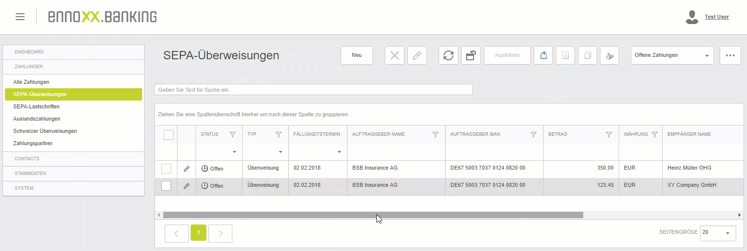 Über die Funktion "Auftraggeberkonto ändern" lässt sich für alle selektierten Zahlungen in nur einem Schritt der Auftraggeber ändern.