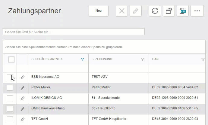 Unter dem Menüpunkt "Zahlungen" können die "Zahlungspartner" angepasst werden: