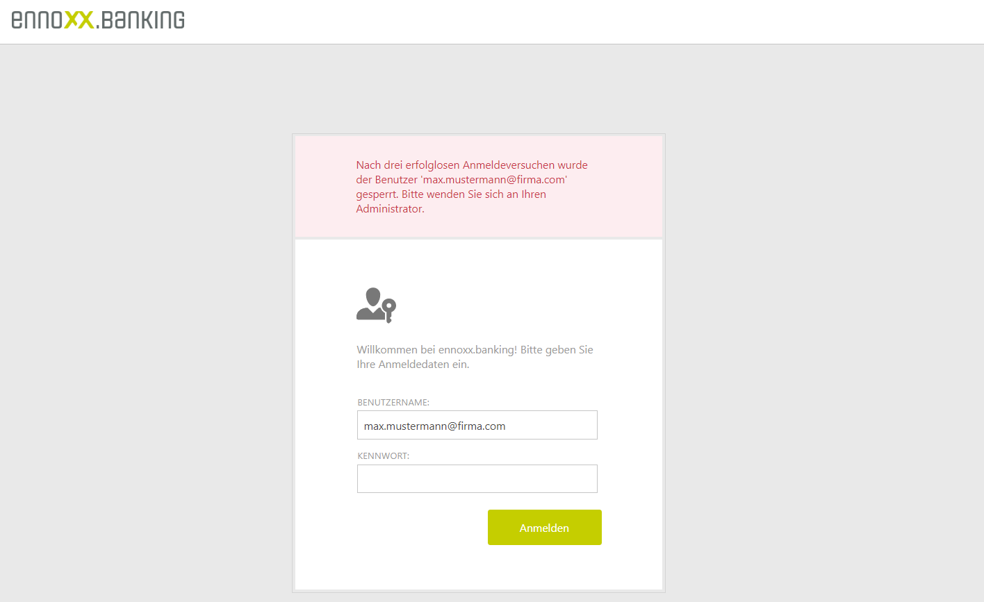Falls Sie Ihr Passwort zum dritten Mal falsch eingegeben haben erscheint folgende Meldung: