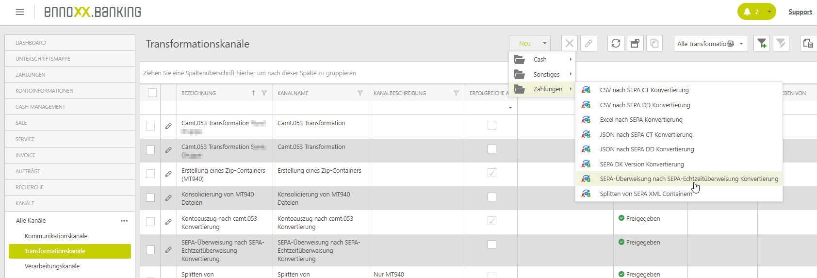 ennoxx.transform includes by default a transformation channel that converts SEPA credit transfers into SEPA - Instant Payments.