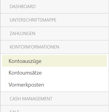 In the navigation group "ACCOUNT INFORMATION" the retrieved account statements and account transactions can be viewed.