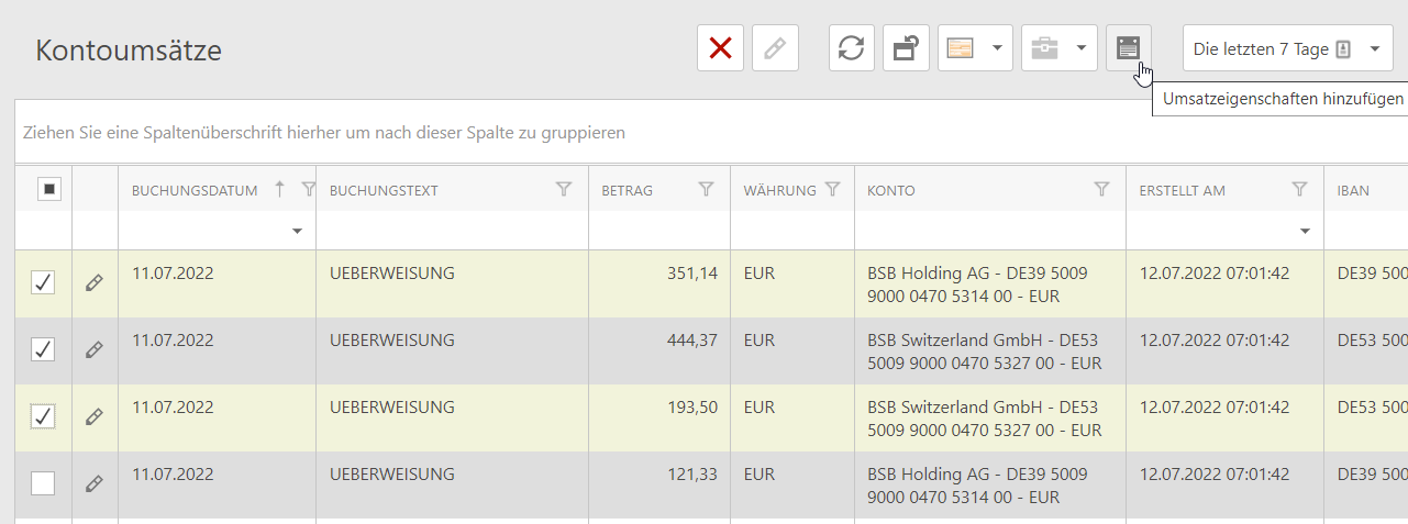 To do this, mark the corresponding transactions in the transactions list and select the "Add transaction properties" button.