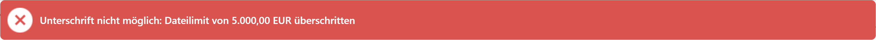 In the case of electronic signature, exceeding a configured limit results in a corresponding error message that is displayed for a few seconds in the upper area of the application: